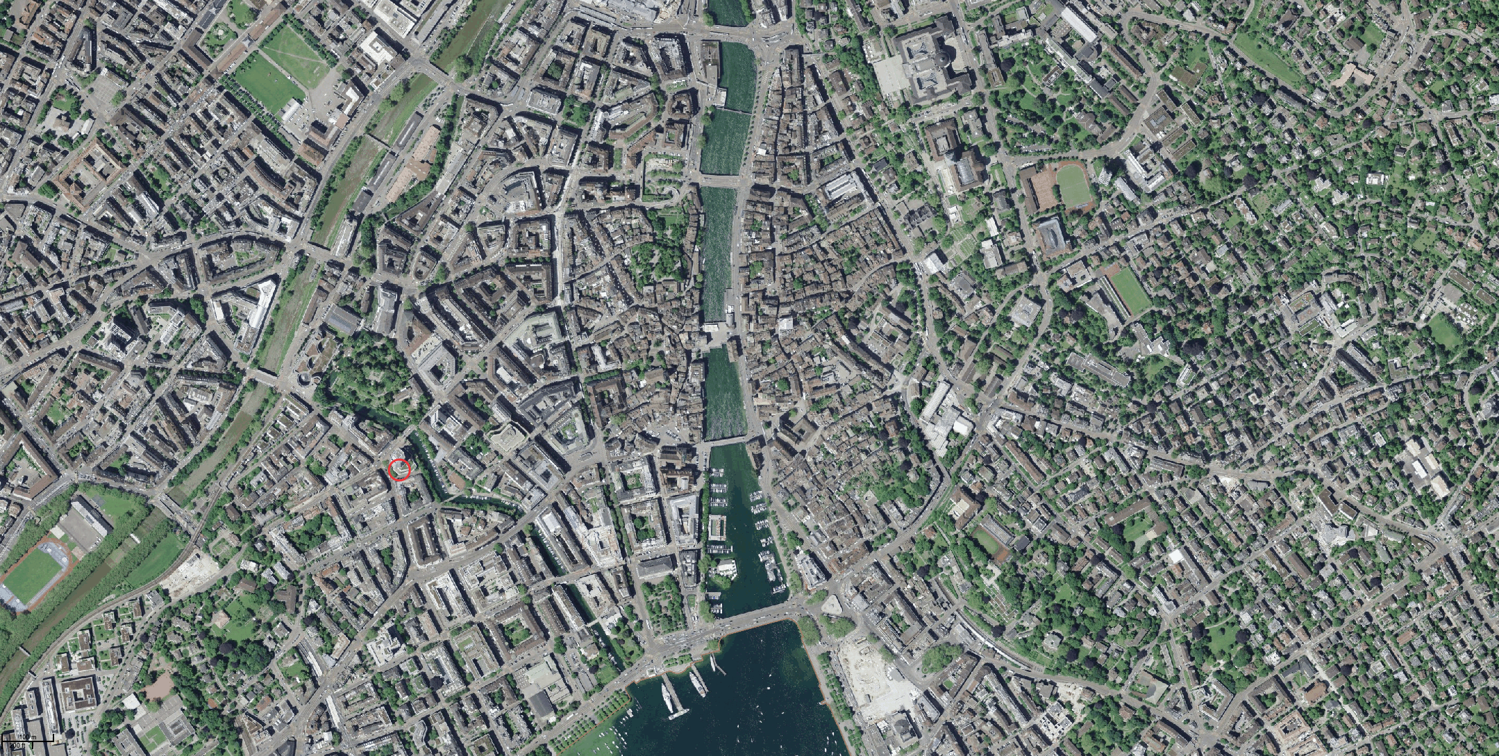 Das Hochhaus zur Schanzenbrücke steht an städtebaulich prominenter Stelle unmittelbar am Schanzengraben, an der Kreuzung Stockerstrasse – Brandschenkestrasse und diagonal gegenüber dem alten Botanischen Garten.